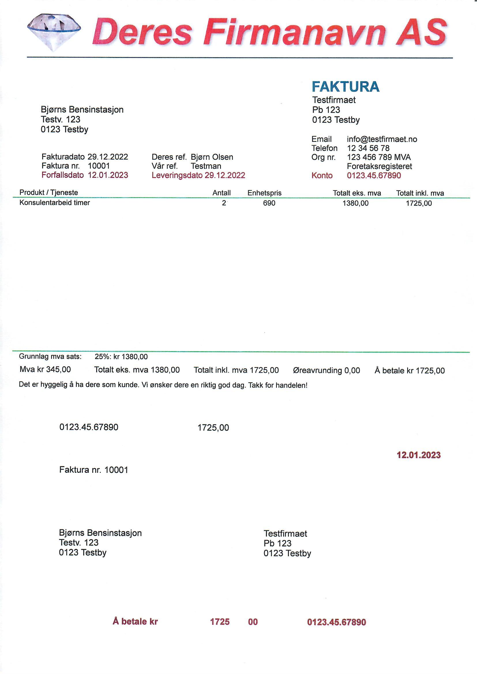 Forøvrig ønskes opplyst at jeg er svært fornøyd med fakturaprogrammet. Dette er benyttet nå i mange år.